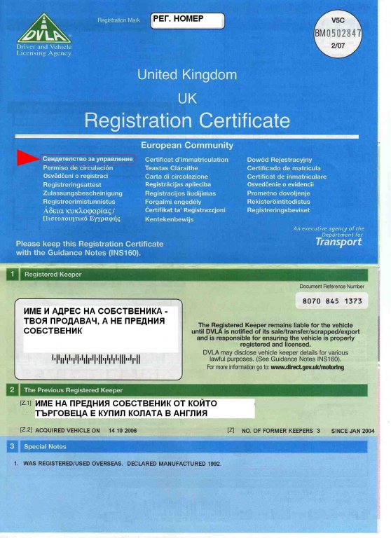 V5c Sertifikat Registracionen Talon Na Kolite V Angliya